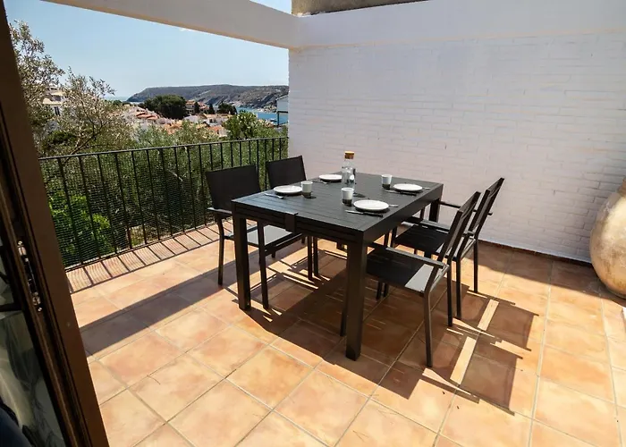 Situada a poco más de 20 minutos a pie de la Spiaggia S'Alqueria Gran, la villa La Caseta de Cadaqués invita a los huéspedes a relajarse en una terraza.